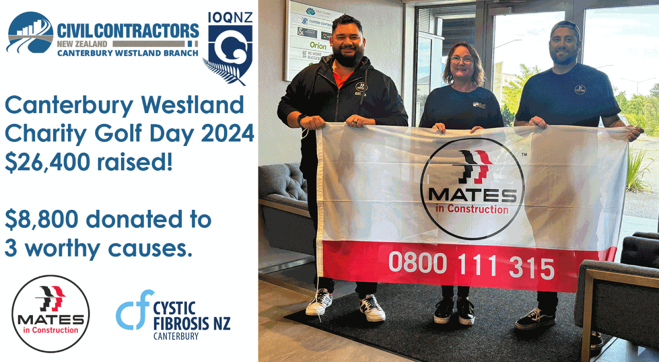The CCNZ & IOQ Canterbury Westland Charity Golf Day took place at Templeton Golf Course on October 4th, raising an incredible $26,400. The funds were shared among three deserving charities: Mates in Construction, Cystic Fibrosis NZ, and an IOQ family in need.