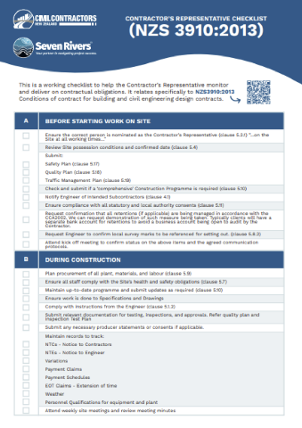 Contractor’s Representative Checklist NZS 3910 2013
