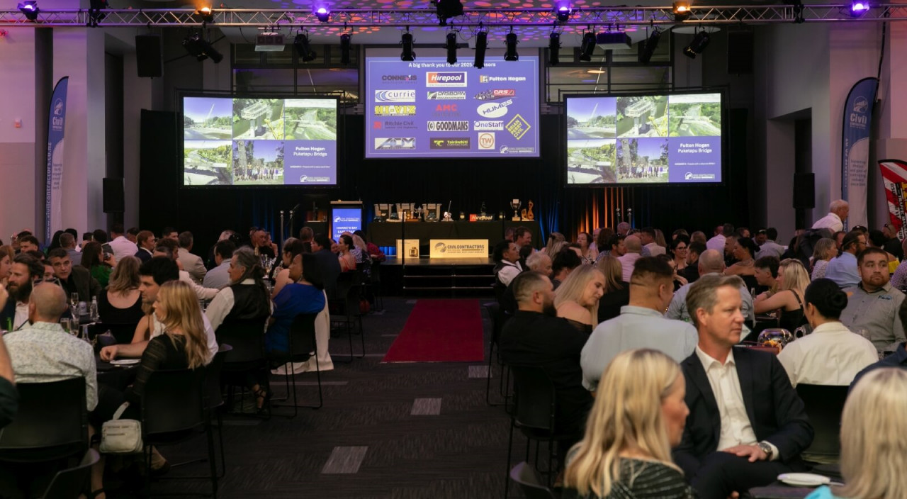 More than 240 industry professionals gathered at the black-tie event to recognise outstanding infrastructure achievements and people across both regions, with many award-winning projects showcasing the civil industry’s critical role in the recovery from Cyclone Gabrielle.