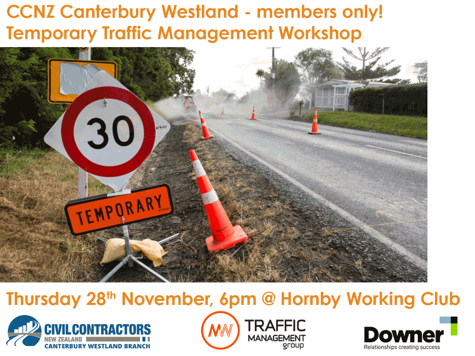 A big thank you to the team from Men at Work, especially Dan Adams and Shaw Ritson from Downer, for their support of this event. We also greatly appreciate the valuable contributions from Michelle Farrell (CCNZ Technical Manager), Ryan Cooney (NZTA), and Simon Hodges (Christchurch City Council).