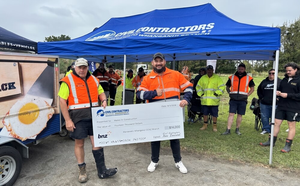 A highlight of the day was a special presentation of $14,000 to MATES in Construction, raised by local CCNZ branch members at the CCNZ Annual Manawatū Whanganui Golf Tournament in August.