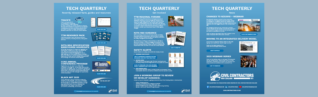 Civil Contractors New Zealand’s members have expert knowledge. We bring knowledgeable people from across the country together to understand the technical knowledge that is needed to support quality infrastructure, a safe and healthy industry and a healthy New Zealand.